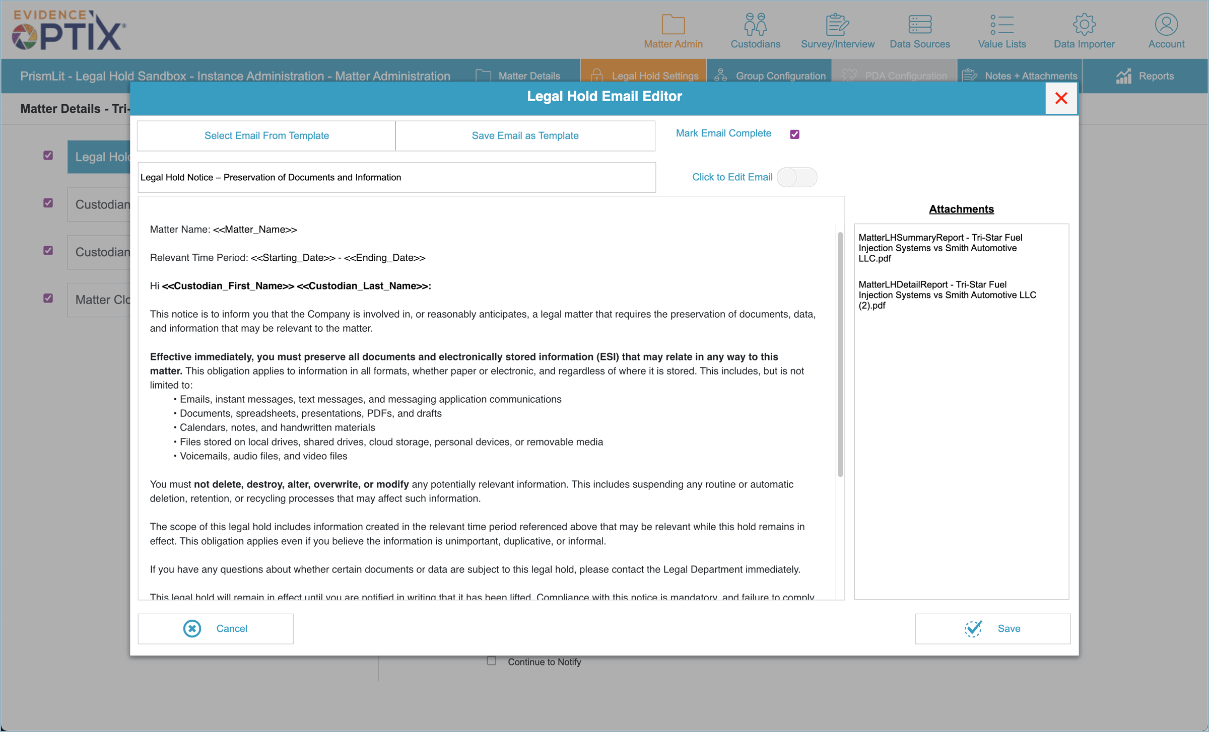 Informing, guiding, and documenting custodian and data decisions throughout the litigation lifecycle.