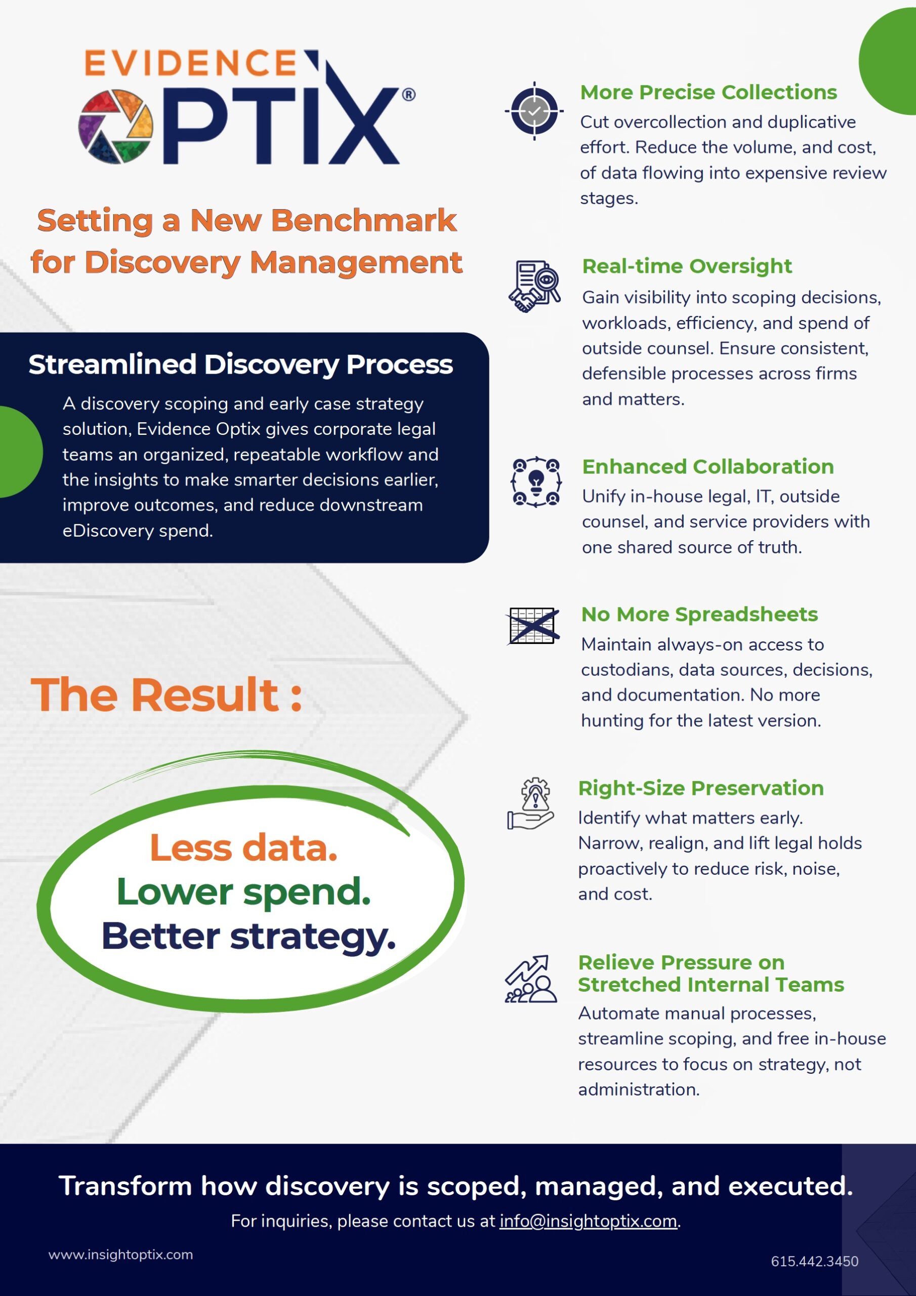 With a modern workflow that replaces scattered spreadsheets and guesswork, Evidence Optix delivers a faster, smarter way to scope discovery, understand risk, and make more informed strategic decisions earlier — before costs explode.